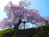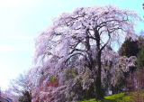 二本松市内、高村智恵子の生家に近い安達地区、本久寺の珍しい三段枝垂れは逆光で撮れなかった。鏡石の枝垂れは樹齢400の老木。二本松駅前の茶園の桜は樹齢800年の見事なエドヒガンザクラ。