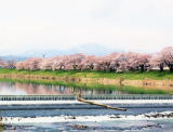 山村部から東北線や国道4号線沿いの市街地に移動。戦後の混乱期、国鉄列車が脱線転覆する松川事件は昭和の国鉄三大ミステリー事件といわれた。その東北線の側、池に映る芳水の桜。