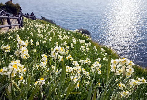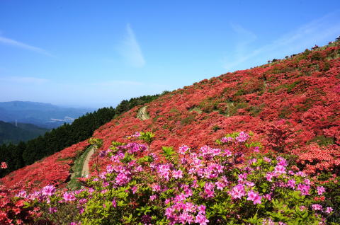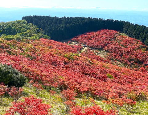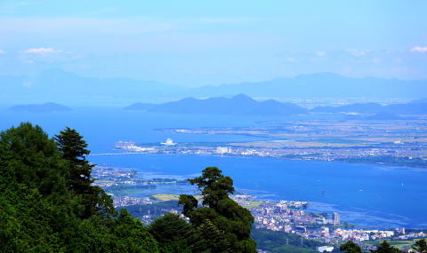 標高848m、京都と滋賀の県境に位置、山上から眼下に琵琶湖や伊吹山まできれいに見通せるほどの好天気。登り口は京都側の八瀬からケーブルとロープウェイ。
