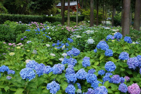 山上から滋賀県側の東麓にかけて東塔、西塔、横川の三塔十六谷の堂塔からなる。比叡山の山全域が境内とされるほど広大。