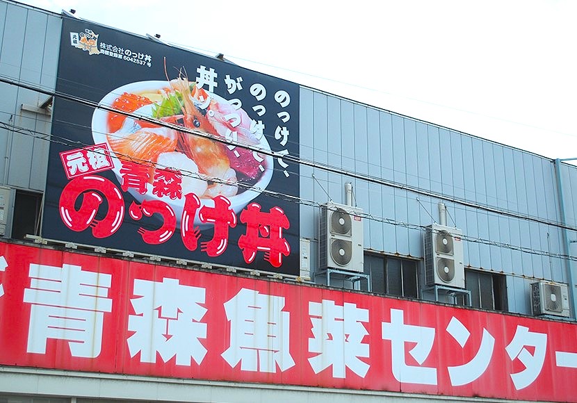昼食は青森市の中心街にある青森魚菜市場の名物「のっけ丼」。ご飯の上に自分の好みの魚菜類を買い足していく。店頭でウニやホタテの身をとり出しているから新鮮。妻と2人で3500円の食券で海鮮丼を堪能。