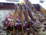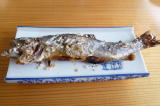 辰子像の周辺は観光バスなどで大混雑。湖畔のたつ子茶屋で昼食。名物のピチピチ跳ねる大型の活けイワナの串焼きと味噌たんぽを2皿も食べた。