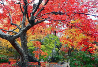 城門のような正門をくぐると、荒木村重が植えた樹齢450年の大楠や大灯篭、大蘇鉄に驚かされる。姫路藩主が使った黒漆の二階建て船屋形を庭園に移設。茶室、石橋、飛石、敷石や各種の石灯篭、滝などを配した池泉回遊式庭園に盆栽松、イロハモミジ、ツツジなどが植わり、池では錦鯉が優雅に泳ぐ。旧異人館のハッサム邸も移設保存されている。