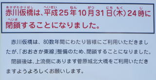 約80年間使用されてきた人道併用橋は2013年秋に閉鎖。今後、歩道としての機能は無くなる。そのため名残を惜しむ人達が多く訪れている。2015年から鉄道専用複線軌道に生まれ変わる。