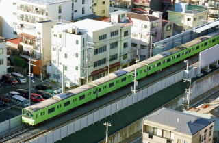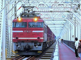 人道橋の横をすれすれに長大貨物列車が走ることから鉄道ファンが集まる名所になっていた。