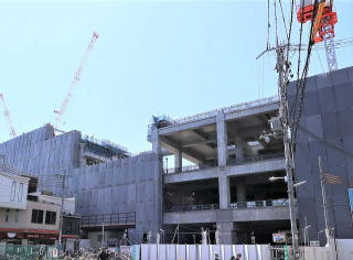 開業2年前、野江新駅舎工事はゆつくりであるが進んでいる。しかし、梅田阪神百貨店の建て替え工事の進み方に比べるとイライラするほど遅い。