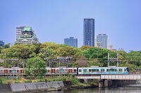 ■ 「桜ノ宮駅」1896年(M29)開業。地主神や天照大神、仁徳天皇を祀る櫻宮神社に由来する地名。境内に咲き誇る桜は豊臣秀吉が称賛して流鏑馬を行ったと伝わる程であった。これに因んで大川沿いに多くに桜が植えられ、今日では桜ノ宮、大川一帯は大阪城公園とならぶ大阪随一の桜の名所となっている。