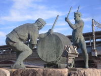 ■ 「芦原橋駅」1966年(S41)開業。今宮駅から歩いて1キロ未満と徒歩距離で最短。芦が茂る低湿地であったことが地名の由来。浪速区周辺は太鼓、靴、皮製品を扱う店舗が多い。和太鼓は石川県に次ぐ産地。