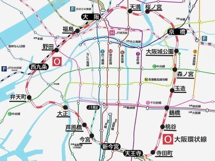 環状線乗降客は大阪駅、天王寺駅に次ぐ3位となる1日50万人。JR大阪環状線、東西線、学研都市線の他に、京阪線、地下鉄長堀鶴見緑地線の5線4駅が集まる交通要点。集客力のある巨大ビジネス街とディープな歓楽街の複雑な顔を持つ。終戦直後の闇市の細い入り組んだ路地に飲食店や娯楽施設など雑居ビルが乱立して再開発が遅れた。その様子は大阪街歩き「京橋再開発プロジェクト」で記載済みのため省略。