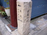 出口から伊加賀を経て枚方大橋の南詰にでる。国道を横切ると東海道56番目の枚方宿の西の見附。この周辺は石標などでわかりやすく表示されている。