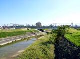 納所交差点に戻って伏見を目指す。線路の向こうに広大な京都競馬場がある。横大路で京阪の踏切を渡り宇治川右岸堤防を進んで国道1号線を越える。宇治川の向こうは高速道路が走り住宅団地が広がる。昔、この辺りは宇治川が流入して巨大な巨椋池(湖)であった。