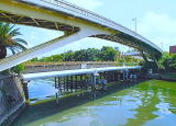 宇治三栖閘門を過ぎると伏見港公園。秀吉は宇治川、巨椋池の治水とともに伏見築城の物資搬入港として港を整備、大阪との間を三十石船が往来した。今は観光の十石船や三十石船が行き交う。
