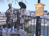 川端通を北上すると三条はもう直ぐ。鴨川の三条大橋は鎌倉期に架けられ、秀吉の時代に大規模改修された。東海道、中山道の起点になる。橋の西詰に弥次喜多像。東詰には東海道53次駅伝記念碑がある。大正6年に三条大橋から東海道の宿場を53次したリレーマラソンが日本最初の駅伝と記されている。