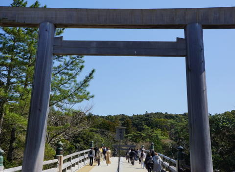 宇治橋の前後の大鳥居を潜ると内宮の神域となる。この大鳥居は内宮正殿の棟柱が遷宮後に再使用される。さらに20年後には伊勢別街道の入口となる東海道関宿の東の追分と、東海道桑名七里の渡し場の鳥居に移される。内宮の棟柱は姿を変えて60年間にわたって使われる。