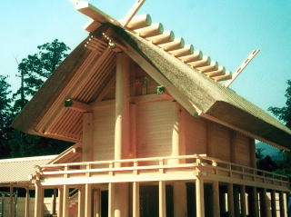 神殿を20年ごと移し替える遷宮。制度化されたのは天武、持統天皇の頃からとされ、地面に直接柱を立てる高床式の神明造り。柱の腐食、穀物の備蓄更新、建築技術伝承などのためと考えられている。