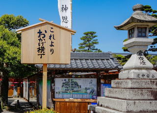 参宮道の終盤に猿田彦神社がある。猿田彦は日本神話において、天孫降臨の際に瓊瓊杵尊を高千穂に導いた後、五十鈴川の川上に鎮座した。その子孫(太田命)が倭姫に五十鈴川のほとりの地域を献上したのが内宮とされる。