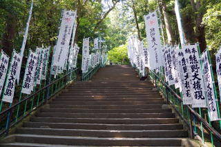 熊野古道の代表的な景観を残す大門坂。その石段の途中に最後の多富気王子(101番)がある。大門坂は距離にして僅か600mであるが、背の高い不規則な石段が300段程。更に熊野那智大社に通じる500段近い石段が続く。登り切ってようやく那智熊野大社の社殿。妻が元気な頃、姉との2人旅でここを登っている。