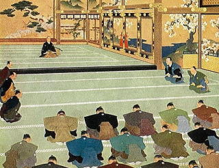 対して急進派公家の岩倉具視らは薩摩、安芸、土佐、越前藩兵らを伴って参内、御所を閉鎖して「王政復古」を宣言するクーデターを起こした。これによって、江戸幕府の廃止、摂政、関白らの廃止、廃藩置県などを盛り込んだ明治新政府が発足する。 |