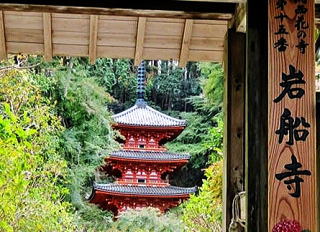 加茂からバスで15分程、丘陵地を少し登った岩船寺前で降りる。