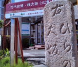 所々で竹内街道、横大路などの道標や石碑、歴史の道案内などがある。3キロ程で金岡神社。住吉の神を祀るため住吉大社がある西向きに鎮座している。境内に旧地名の「大道」の石碑が残る。この付近から難波宮まで真北に約14キロの「難波大道」が拓かれ、大和の飛鳥京や藤原京を繋ぐ要路であった。