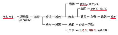 後の清和天皇(56代)も皇子に源氏姓を与えて、下向させた清和源氏の中で最も繁栄したのが源経基。子供の源満仲が兵庫県川西市多田郷を支配する武士団を形成。これが多田源氏で、その3人の子供らが摂津源氏、大和源氏、河内源氏へと独立した。