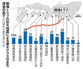その結果、内閣府資料の津波高さは高知県で34m、伊豆半島下田で33m、和歌山県20mとなった。大阪でも大阪湾から遡上する津波で大阪市の半分と地下街も浸水するとして、これに基づいた地震・津波対策が行われようとしている。