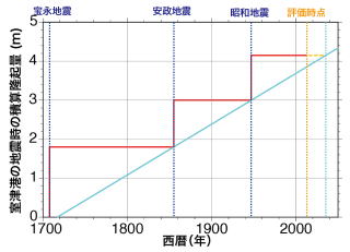 ただ、室戸岬の1点観測だけで決めるのは危険との意見も多く大論争になったが、東日本大震災を予測できなかったため強く否定しきれず、これまでの「単純平均予測」と「隆起量・時間予測」方式の両論併記で答申された。