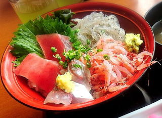清水魚市場に戻って自転車を返却。市場内で仲卸業者が直売する海鮮食堂で名物の海鮮丼で遅い昼食をすませた後、清水駅から静岡鉄道バスで日本平に向かう。
