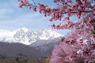 翌日は扇沢から立山黒部アルペンルートで室堂の雪の回廊に行く。そのために松本駅前で泊まったホテルで白馬連峰をバックに桜で彩られた大出公園の美しい写真が掛けられていた。「この頃の白馬が一番美しいですよ」と、ホテルのフロントで聞いた。この時、来年の行先が決まった。