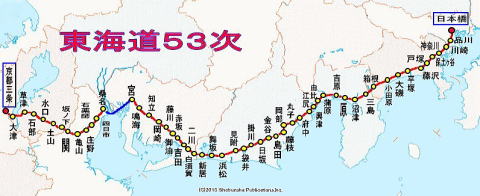 旧東海道57次を巡るのに19日の延べ日数を要した。約545キロあるが、この内、高麗橋から草津宿間は歩き通したが、それ以東は乗り物に乗って移動することが多く、一部の宿場を飛ばしている。