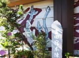 大井川に橋は架けられず「箱根八里は馬でも越すが、越すに越されぬ大井川」と言われた。人足による川越制度のため、増水で川留めになる難所。番所や川越休憩所、旅籠などが建ち並んだ当時の川越遺跡が再現されている。明治になって川越制度が廃止後、始めて架けられたのが蓬莱橋、木橋としては世界最長(897m)。バス便がなく駅から川越遺跡を経由して蓬莱橋まで暑い中、9キロを歩くことになった。この日は島田泊まり。