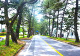天然記念物の御油の松並木は600m程に約300本が植わる。通勤時間帯と重なり、車が途切れることなく通り過ぎるため風情は台無し。
