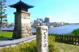 愛知県豊橋市。本陣2、脇本陣1。三河吉田藩は徳川譜代大名の城下町。S字蛇行する豊川を背後地に吉田城が建つ。明治政府は吉田の地名が多いため豊川に架かる橋から豊橋と改めた。