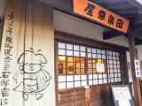 札木町の丸与本陣跡はうなぎ店。うなぎに抱きつくユーモラスな絵が描かれている。付近は旅籠が建ち並び、品川と共に客引きや飯盛女が多い宿場と言われた。この日もよく歩いて豊橋で泊まる。