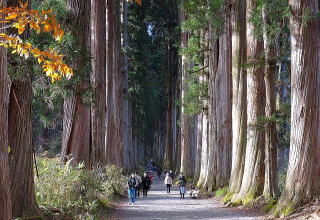 長野駅から戸隠の中心地の中社まで車で1時間。その先の奥社は2キロ程歩くしかない。樹齢400年の杉並木が続き、参道の中程にある藁葺き屋根の隋神門を過ぎると神域。400段以上ある階段をクリアすると奥社。荒々しい戸隠の稜線が望める。