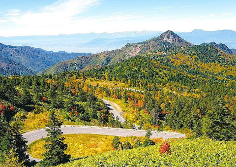 国道292号線の志賀草津道路。風情ある湯田中温泉を過ぎるとS字カーブが続く山岳道路になる。志賀高原の中心の丸池、蓮池周辺には由緒ある志賀高原ホテルなどが建ち並ぶ。