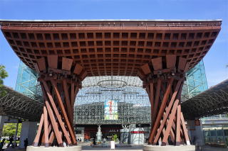 金沢駅も北陸新幹線の開業で大幅にリニュアルされた。特徴的な鼓門は金沢の伝統芸能に使われる鼓をイメージしている。外様の前田家は徳川幕府対策として軍備化を避けて伝統工芸、芸能、食文化の発展に尽力した歴史的背景が息きづいている。