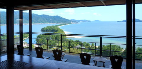 若狭湾と阿蘇海を隔てる4キロ弱の細長い自然が造り出した砂洲の松林。この景色が最も美しく眺望できる場所がここ文殊山とされ、龍が天に昇る姿に例えて「飛龍観」と呼ばれている。