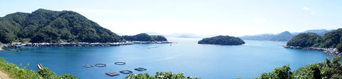 暗くなるとおぼろ月が海に映り、漁火が点々と輝く夜景も素敵である。