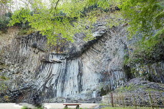 城崎温泉の手前、円山川の畔に玄武洞がある。火山活動で流れ出したマグマが、冷えて固まる時に規則正しい割れ目を作り出した。多角型の石柱は石材として採掘、城崎川の護岸などに多用されている。その採掘跡として残ったのが玄武洞。史跡として保護されている。