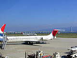 関空から午後の便。搭乗機はMD81。細長い胴体の後方、垂直尾翼の両横にエンジンがある。女満別空港まで2時間。日本列島をほぼ縦断するように北上、雲の上から顔を出す富士山を機中から望めた。