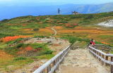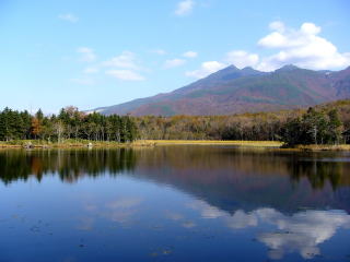 知床五湖に向かう。狭い駐車場が心配であったが入れた。一湖、二湖をツアーの集団と前後しながら巡る。コバルト色の二湖に知床連山が逆さに映る。青い空・白い雲・紅葉とが織りなす景色は素晴らしい。