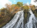 朝一番に立ち寄つたのはオシンコシンの滝。森から岩肌を濡らして扇状に流れ落ちる珍し滝。アイヌ語でエゾマツの群生するところが名前の由来らしい。