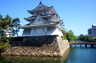 今は天守閣は存在せず、月見櫓、艮(ウシトラ)櫓、海水を引き入れる水門、天守閣に続く蛸橋が残る。城跡公園でも松がたくさん植えられ庭園風にきれいに手入れされている。