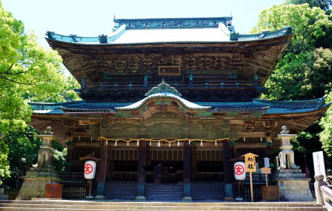 青銅鳥居で431段目。厩には白と黒の神馬がいる。628段目が旭社。神仏習合時代には松尾寺の金堂として信仰の中心となる薬師如来を祀っていた。二層入母屋造、銅瓦葺、総ケヤキ、屋根裏の巻雲、柱間、扉などの細かいところまで鳥獣、草花などの彫刻が施されている。完成まで40年もかかった立派な建物は重要文化財に指定されている。