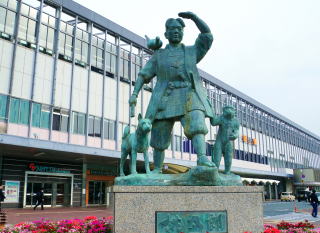 朝一番の新幹線で岡山。駅東口に桃太郎像がある。岡山名産、白桃は日本一の生産量を誇る。
