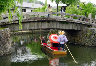 江戸から明治時代の白壁土蔵造り、美術館や文化施設が残る倉敷美観地区に向かう。