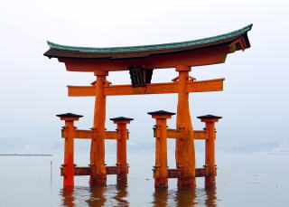 海に浮かぶ社殿となったのは島そのものが神体とされ、神聖な土地に建物を建てるのを避けたといわれる。