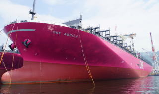 戦艦大和を建造した海軍工廠の跡は、ジャパン.マリン.ユナイテッド(JMU)の造船所となって大型コンテナ船を建造中。戦艦大和より大きい長さ300m、10万トンの巨艦が眼前に現れる。