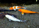 日本三大瓦(石州、三州、淡路)の中でも雪や寒さに強い赤褐色の石州瓦屋根、漆喰海鼠壁の家老屋敷や藩校。その掘割りには色とりどりの鯉が泳ぐ。花菖蒲が咲きだしたばかり。